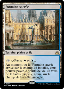 Au moment où la Fontaine sacrée arrive sur le champ de bataille, vous pouvez payer 2 points de vie. Si vous ne le faites pas, elle arrive sur le champ de bataille engagée.
