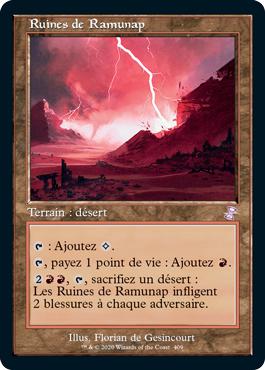 , sacrifiez un désert : Les Ruines de Ramunap infligent 2 blessures à chaque adversaire.